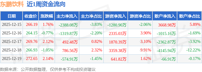 - 配资专业门户 本周盘点(12.15-12.19):东鹏饮料周涨4.23%,主力资金合计净流出3003.82万元2025-12-25